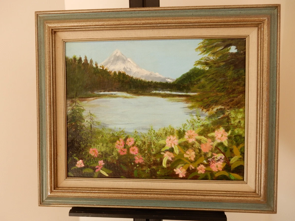 Vintage Oil Painting Mountains Lake Flowers Still Life Framed Plein Air Ebay