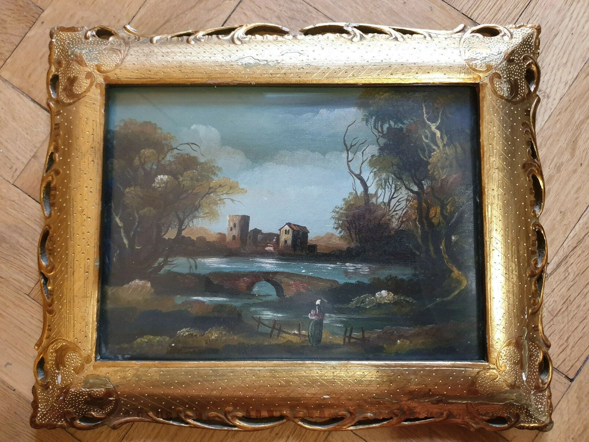 Vintage European Scenery Mini Painting Oil On Wood Framed House By The Lake Ebay